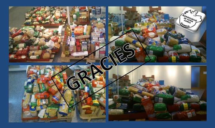MOLTES GRÀCIES!!!!!! No ens cansarem de repetir-ho. COREA COM SEMPRE ÉS SOLIDARIA!!!!! Podem estar ben contents, més de 1.200 Kgs. d´aliments hem arreplegat que entregarem a Cáritas i Creu Roja i una participació de més de 2.000 persones al Nostre Barri de Corea. Gràcies a tots per vindre i als nostres col·laboradors Falla Serpis Gandia, Falla Corea,Falla Màrtirs, Falla Marques de Campo-peru, Falla Plaça Exèrcit Espanyol Jardinet, Consell Dels Joves Gandia i Germandat del Crist de les Angoixes!!